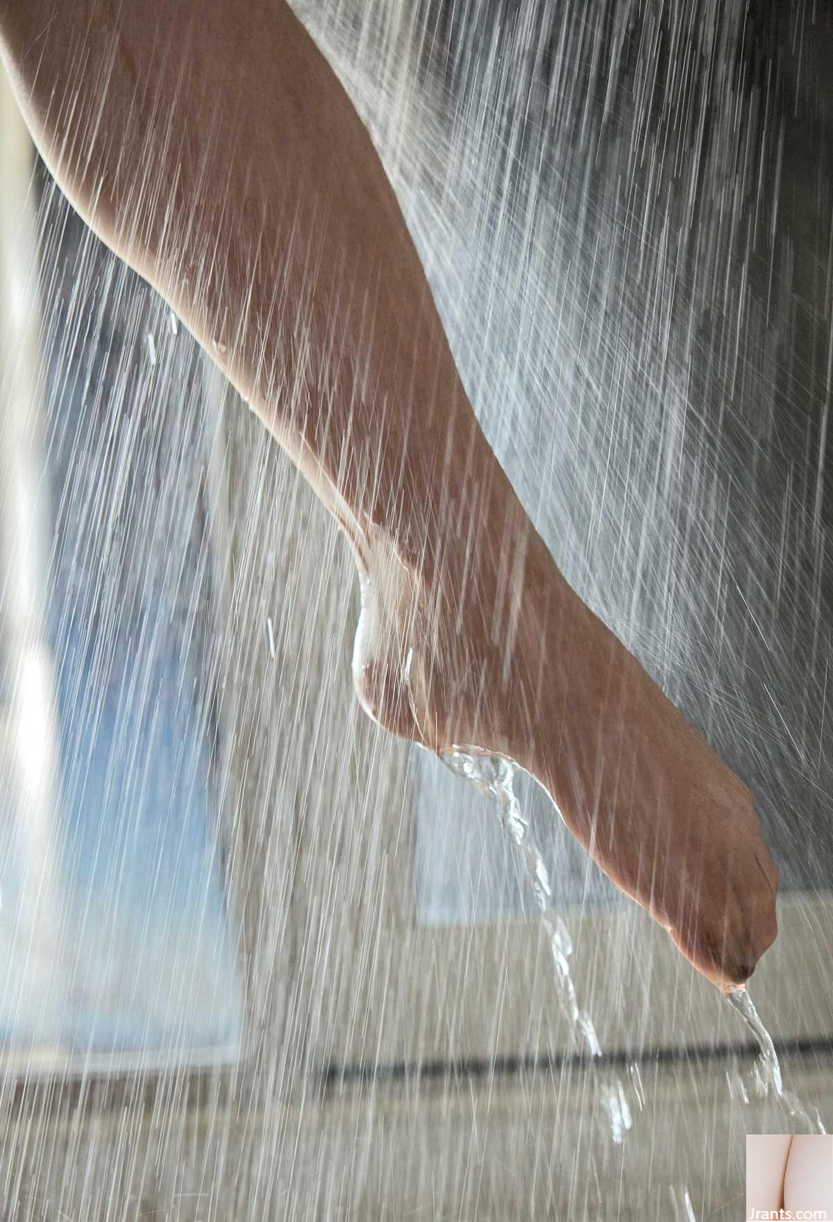 الفتاة الجميلة ذات البشرة الفاتحة والبشرة الحليبية التي ترتدي منشفة حمام زرقاء فاتحة، موموتسوكي نانا، تأخذ حمامًا بالينابيع الساخنة (21P) 10 فبراير، 2024